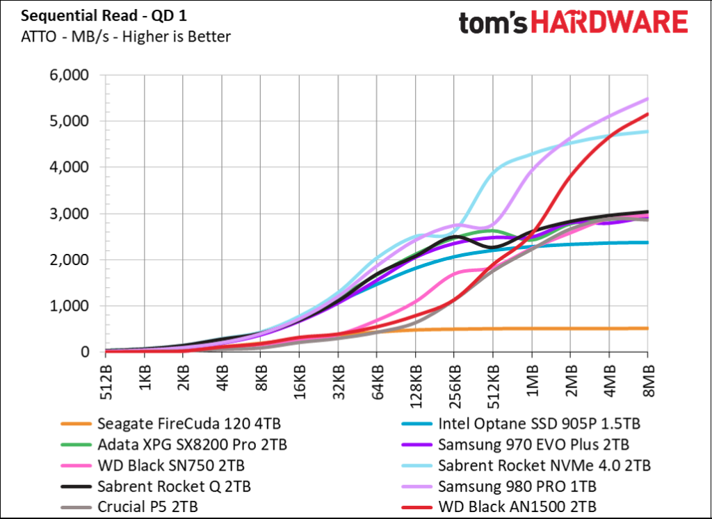 The sustained read will indicate how fast the game can load and how effective is the new assets loading time during a game; the faster it is, the quicker your GPU can process the data and render it to the screen, providing better overall gaming experience.